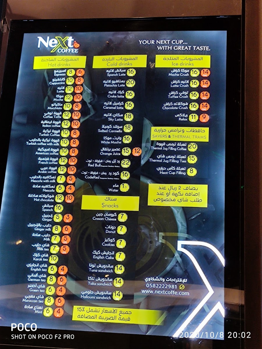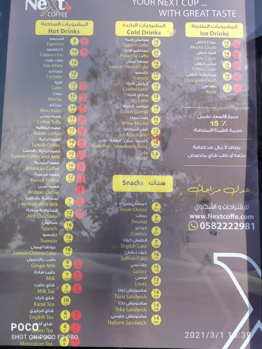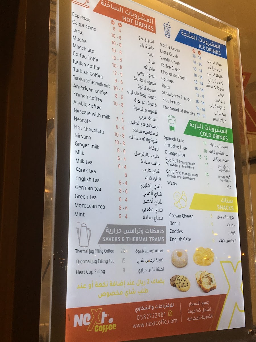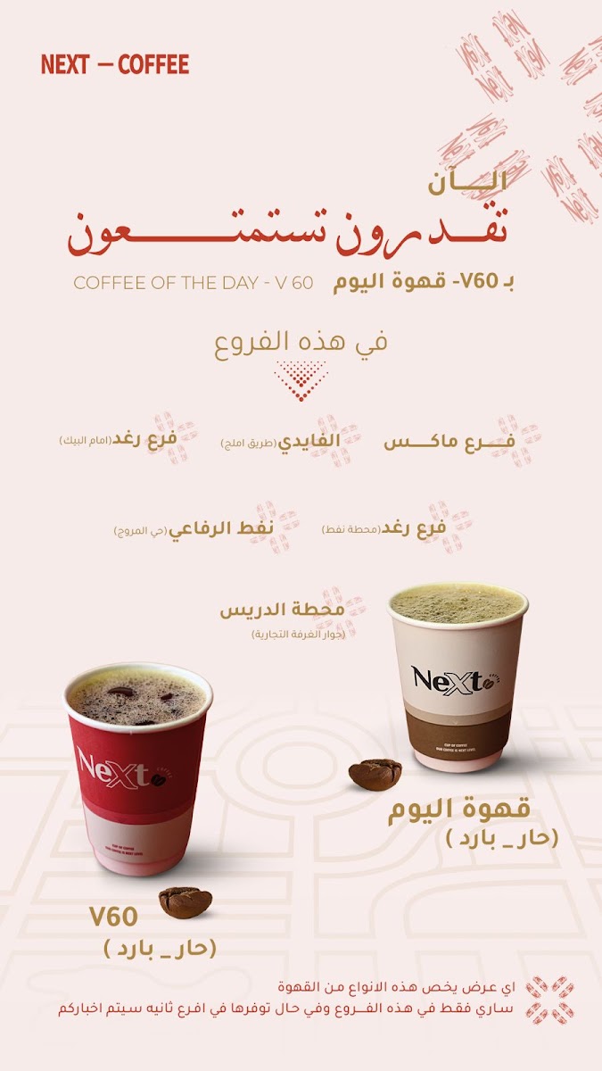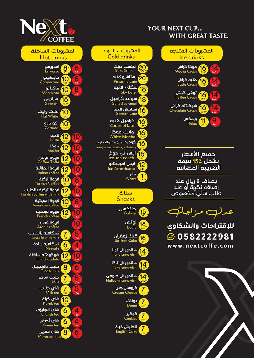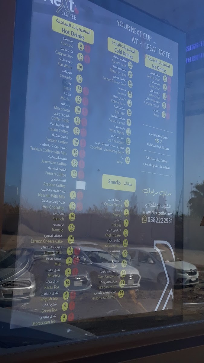 At Next Coffee, you’ll find a menu that’s as rich and inviting as the aroma of freshly brewed coffee wafting through the air. Whether you're a coffee connoisseur or someone who loves a warm, comforting drink, the Next Coffee Menu offers something for every taste. From bold espressos to creamy lattes, every cup is carefully crafted to deliver the perfect balance of flavors. But that’s not all-there are also sweet and savory options to pair with your drink, from pastries that melt in your mouth to delicious sandwiches that hit the spot. Nestled in the heart of Yanbu, at 4699 King Abdulaziz Rd, this is the ideal place to unwind, catch up with friends, or simply enjoy a quiet moment with your favorite brew. With each item on the menu thoughtfully prepared, it’s easy to see why Next Coffee is quickly becoming a local favorite.